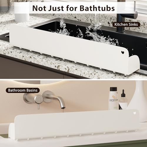 TSJLIKI Splash Guard for Bathtub Kids, Silicone Bathtub Splash Water Stopper for Baby Bath, Heat-Resistant & Durable Seamless Design, Anti-Slip Drain Groove with 10 Strong Suction Cups, White, 23.4" x 5" (Square)
