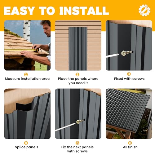 • BOBIBAN 20 pcs Metal Roofing Panels - Corrugated Galvanized Roof Panels L41.34x W17.72 Inch, Waterproof Tin Roof Sheets for Garages,Sheds, Stables and Mobile Homes, Includes Screws(Black,L41.34''-20)