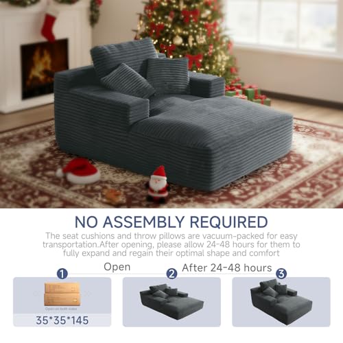 Sonovafurn 68'' Chaise Lounge Chair Indoor, Corduroy Upholstered Boneless Sofa Bed, Deep Seat Sleeper Couch Reading Chairs, Small Comfy Cloud Sofas Couches for Living Room, Bedroom, Movie Room (Dark Grey), Oversized