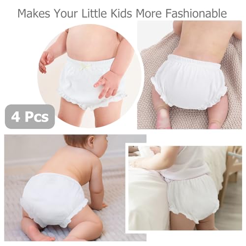 • 4 Pcs Baby Bloomers for Toddler Girls Newborn Diaper Covers for Girls Cotton Briefs Shorts Underwear White