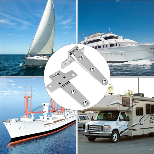 • QWORK 316 Stainless Steel Marine Grade T Hinges, 4 Set 6'' x 3'' Boat Hatch Hinges with Screws, Corrosion-Resistant Casting Cabinet Hardware Door Hinge for Marine, Yachts, Doors, and Cabinets