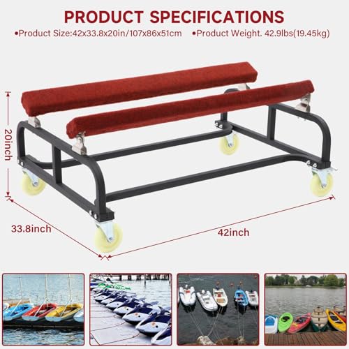 VELPAX 1300 LBS Capacity Watercraft PWC Dolly,Jet ski Dolly,Boat Storage Trailer Adjustable Width with Four Casters & Two Brakes,Heavy Duty Boat standsfor Dinghy, Sailboat, RED