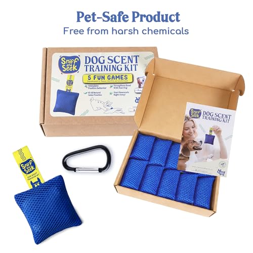 • Race&Herd Original 10 Pcs Dog Scent Training Kit, Scent Work Training Kit for Dogs, 5 Brain Games - Nosework for Dog Sniffing Toys, Mental Stimulation Agility Equipment for Dogs (Blue)