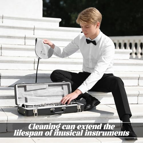 • Clarinet Cleaning Kit - 4Pcs Clarinet Swab Clarinet Cleaning Cloth for Piccolo Flute Saxophone and Other Wind & Woodwind Instruments (Gray)