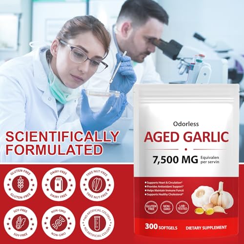 • Aged Garlic Extract Softgels-7,500 mg| Odorless Garlic, 15:1 Extract & Low-Temp 2-Year Aging for Heart, Circulation Health, Immune System Support, Rich in Antioxidant, Gentle & Natural|300Pcs