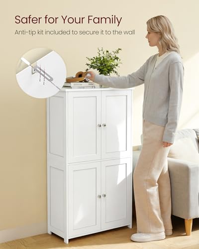 • VASAGLE Floor Storage Cabinet, Shaker Cabinet with 2 Adjustable Shelves, 4 Doors, Tall Freestanding Organizer Unit, for Kitchen Bathroom Living Room, Cloud White UBBC553WH01S
