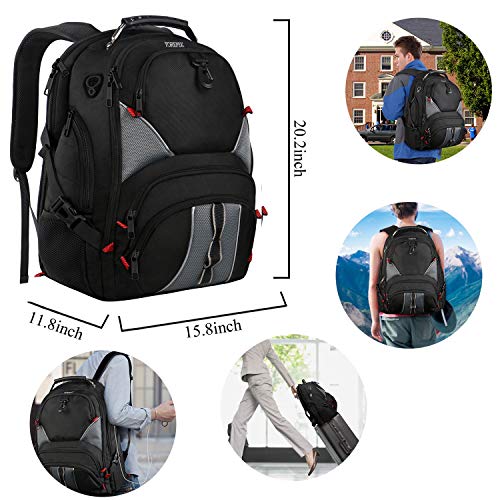 • 17 Inch Laptop Backpack,Extra Large Travel Backpacks for Men,TSA Friendly Business Computer Backpack with USB Charging Port,50L Large Capacity College School Bookbag with Luggage Sleeve ,Black