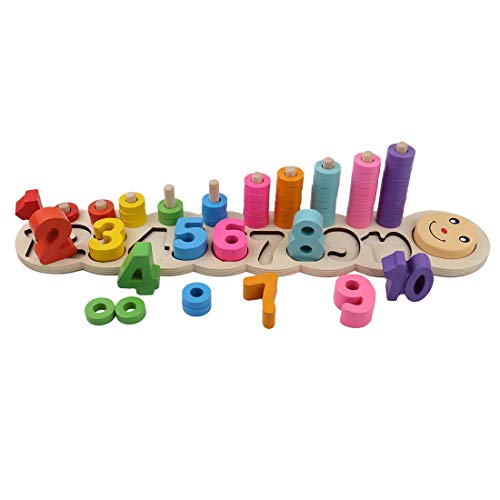 • GEDIAO Wooden Montessori Math Blocks Number Stacking Learning Toys Kids Preschool Counting, Colorful Wood Board Toy