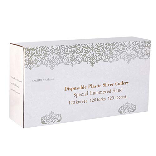• Supernal 360pcs Silver Plastic Cutlery,Elegant Plastic Silverware,Silver Hammed Silverware,Disposable Flatware,Include 120 Forks,120 Knvies,120 Spoons,Perfect for Birthday,Party,Wedding