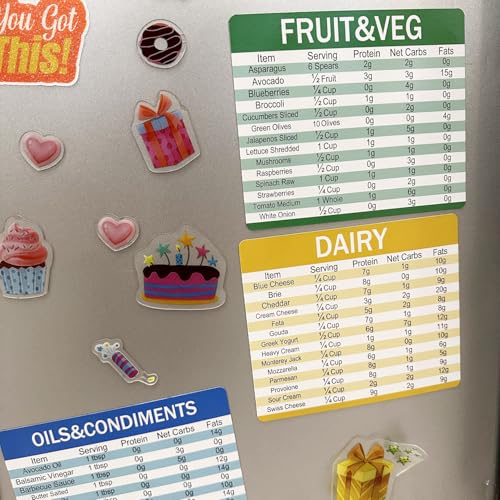 Besttile Diet Cheat Sheet Quick Guide Fridge Magnet Reference Charts for Kitchen,6 * 5 inch,4 Pcs, Multicolored, zzzz-s