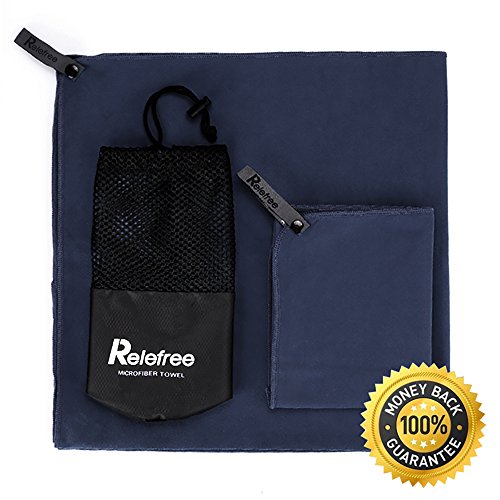 • Relefree Premium Microfiber Towel for Travel, Sports & Outdoors FREE Hand/Face Towel & Mesh BAG, Antibacterial Quick-dry (Navy Blue)