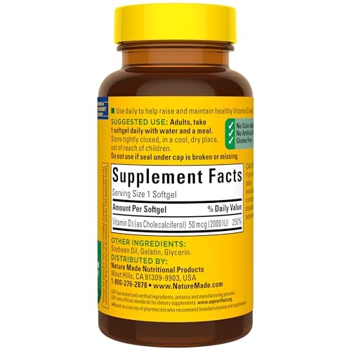 • Nature Made Vitamin D3 2000 IU (50 mcg), Vitamin D Supplement for Bone, Teeth, Muscle and Immune Health Support, 90 Softgels, 90 Day Supply