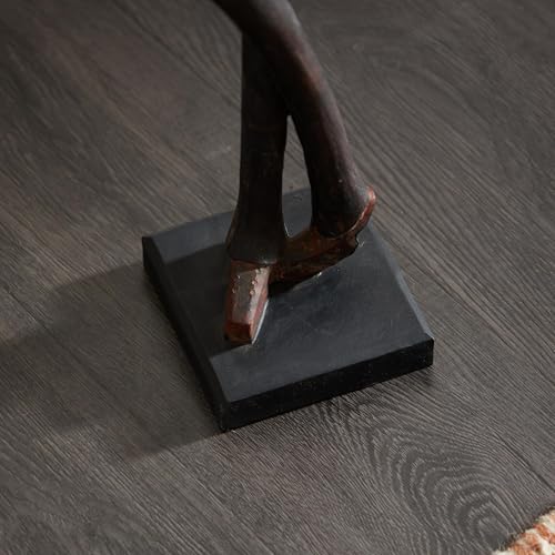 Bring abstract art to life with this 4-piece set of tall jazz musicians figurines. These long-legged floor decor statues depict four men playing a horn, an accordion, a saxophone, and a guitar. Each stone figurine stands on a rectangular base and is wearing a hat, shirt, tie, suspenders, and brown shoes with alternating gold, brown, red, and black colors. Greet guests on your entryway or living room with these polystone figurines. This set of accent decor makes a great gift for musicians and music lovers, mardi gras decorations, or finishing touch in your entryway or living room. Designed with black rubber stoppers at the base that prevent scratching furniture and table tops, as well as sliding around. Wipe clean with a dry cloth. Suitable for indoor use only. Set of 4 large jazz band floor statues. Eclectic design. This item comes shipped in one carton.
