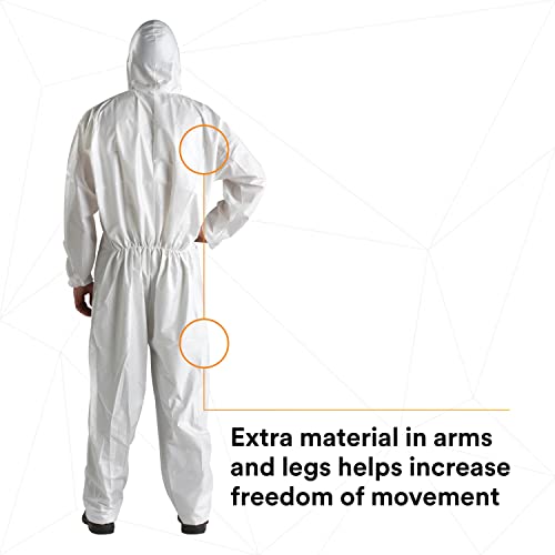 • 3M Protective Disposable Coveralls, Bulk Pack of 25 White Coveralls, Hooded with Elastic Cuff, Two-way Zipper, Antistatic Protection, 3XL, 4510-BLK-3XL