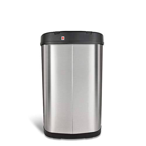 This 13 Gal Stainless Steel trash can is designed and engineered by NINESTARS, the world's first legal patent holder. With its sleek rectangular fingerprint-resistant design, it can be used in almost any place, such as the home, office, kitchen, bedroom, dorm room or a kid's room. This durable trash can uses the most advanced sensor technology which can be found in all Ninestars' trash cans. Pass your hand or debris within ten inches or a 130° angle from the infrared sensor and the lid will automatically open. The lid will remain open if debris or hand remains within the range of the infrared sensor. Three seconds after your hand moves away from the lid, it will close automatically. Power lasts up to 6 months in normal daily usage. It includes a ring liner to keep trash bag from public view for a neat and clean appearance. Commercial-grade fingerprint resistant stainless steel.