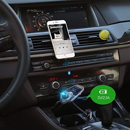 • VicTsing Bluetooth FM Transmitter, Wireless In-Car Audio Adapter /w USB Port, Support AUX Input 1.44 Inch Display TF Card Slot - Silver Grey
