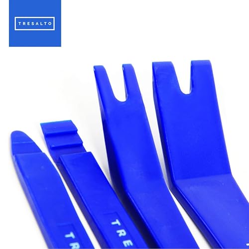 Tresalto Auto Trim Removal Tool Set - 4pcs No-Scratch Plastic Pry Tool Kit for Car Interior - Fastener, Clip, Door Panel, Molding, and Dashboard Removal Tools - Easy-to-Use Auto Trim Tools for Vehicles, Blue, 4 Pack