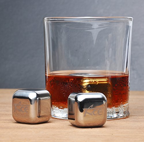 • ACE Whiskey Stones - Rock Your Party With Stylish Reusable Stainless Steel Ice Cubes! Chill Your Whiskey Fast. Set of 4 Metal Wine Accessories With Tongs Comes In Classy EVA Gift Box