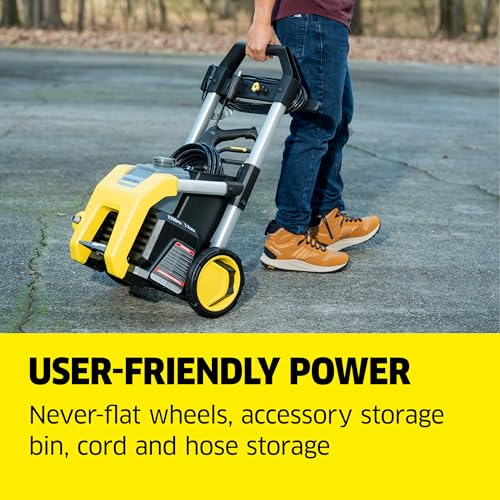 Kärcher Pressure Washer K1700, CETA Certified, 3 Spray Nozzles, Detergent Tank, for Cars, Driveways, Siding, Patios, 1.2 max. GPM, Yellow, 1.2 GPM