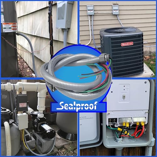 • Sealproof Power Whip Assembly, 1/2-Inch x 6 Ft Nonmetallic Liquid Tight Flexible Electrical Conduit and 10 Gauge Wire Single Phase Preassembled A/C Hook-up Whip Kit, 1/2"