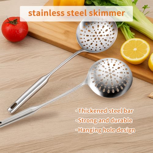 • TBWHL Skimmer Slotted Spoon, Slotted Spoons for Cooking, Heavy Duty 304 Stainless Steel Slotted Spoon with Vacuum Ergonomic Handle, Comfortable Grip Design Strainer Ladle for Kitchen, 14.96 Inches