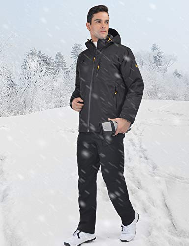• HARD LAND Men's Ski Jacket Down Insulated Waterproof Winter Jacket Windproof Snowboard Snow Coat Black Size X-Large