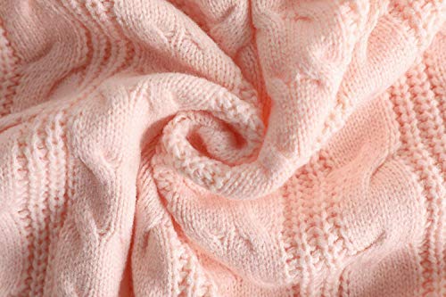 • Womens Pullover Sweaters Plus Size Cable Knit V Neck Lace Up Long Sleeve Fall Jumper Tops (S, Pink)