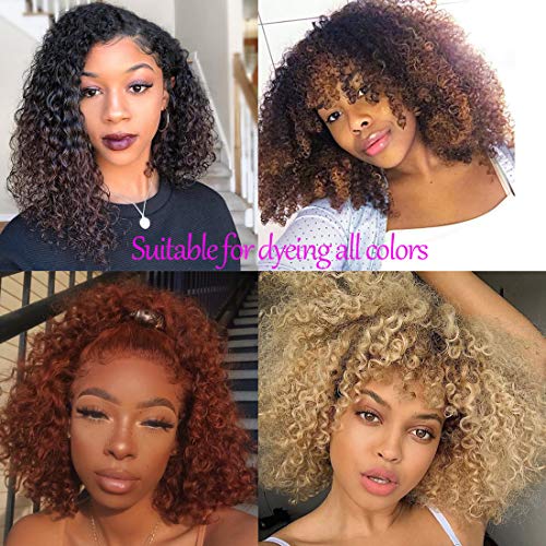 • BLY Short Curly Bob Wigs Brazilian Virgin Human Hair Lace Front Wigs Kinky Curly Hair 13x4 Lace Part 150% Density Pre Plucked with Baby Hair (8 inch, Kinky Curly Bob)