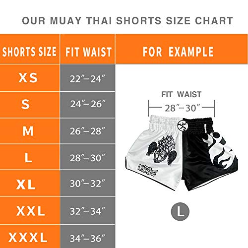 HUOLEI Muay Thai Shorts for Men and Women, High Grade MMA Gym Boxing Kickboxing Shorts Workout Training Grappling Martial Arts Fight Shorts Clothing., 1white&black, XXXL- FIT WAIST 34"-36"