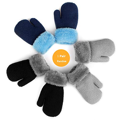 phixilin Baby Toddler Winter Mittens Kids Gloves Boys Girls Knit Thicken Warm Mittens, baby-boys, Gray/Black/Navy Blue