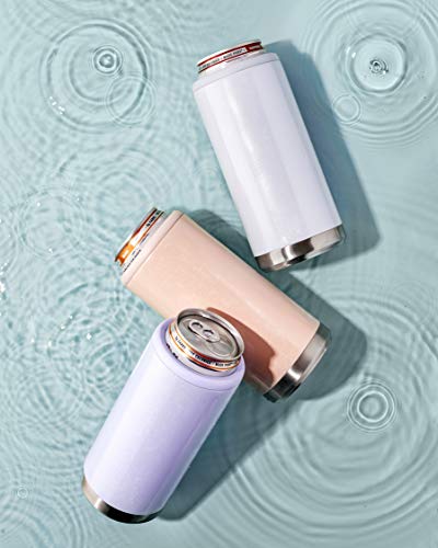 • Maars Skinny Can Cooler for Slim Beer & Hard Seltzer | Stainless Steel 12oz Sleeve, Double Wall Vacuum Insulated Drink Holder - Glitter Lilac