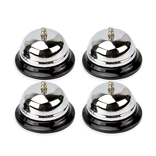 [4 Pack] Call Bells 3.38 Inch - Silver Desk Bell, Stainless Steel Metal Counter Service Bell, Loud and Clear Ring for Elderly, Hotel Reception, Restaurant, Kitchen, Store, School, Teacher and Hospital