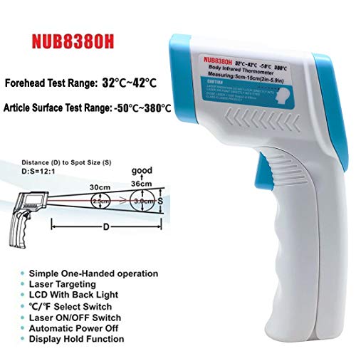 • Nubee Body Medical Infrared Thermometer Non-contact IR Thermometer Forehead Thermometer with 3 Function - Fever Alarm, Over Range Display and 32 Group Data Memory FDA, CE Medical Approved (Blue White)