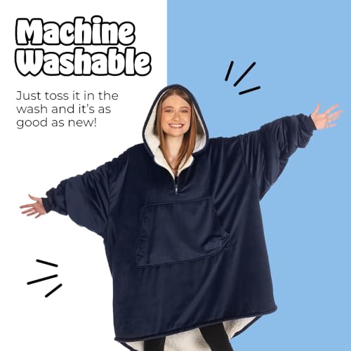 THE COMFY Original Quarter-Zip | Floor Length Sherpa Lined Microfiber Fleece Wearable Blanket, Oversized Design with Hood and Pocket, From Shark Tank, for Women & Men, Warm and Cozy Gifts, Dark Navy Quarter Zip