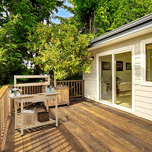 • VINGLI Wooden Potting Bench Tables Work Station Table Outdoor Garden Potting Table with Removable Sink & Storage Shelves,for Garden Supplies,Natural