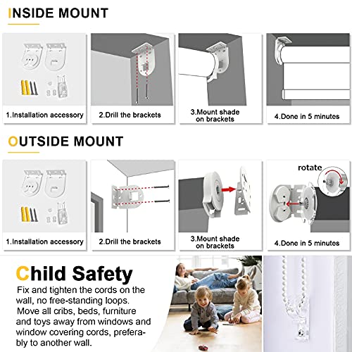 • MiLin Blackout Roller Shades Room Darkening Window Blinds and Shades, Custom Cut to Size, Waterproof Thermal Insulated for Home & Office - White 34" W x 60" H