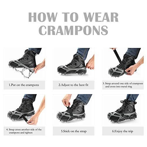 • Crampons Ice Cleats Traction Snow Grips for Boots Shoes Women Men Anti Slip 19 Stainless Steel Spikes Safe Protect for Hiking Fishing Walking Climbing Mountaineering
