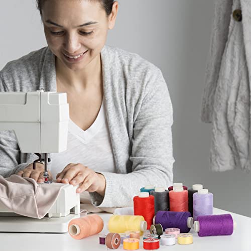• Blibly 72Pcs Bobbins Sewing Thread Kits, 500 Yards Per Polyester Thread Spools with Needle, Threader, Scissors and Ruler, Prewound Bobbin with Case for Hand and Sewing Machine,36 Colors