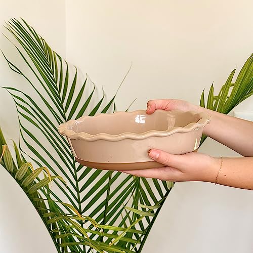 • Mora Ceramic Pie Pan for Baking - 9 inch - Deep and Fluted Pie Dish for Old Fashion Apple Pie, Quiche, Pot Pies, Tart, etc - Modern Farmhouse Style Porcelain Ceramic Pie Plate - Chai