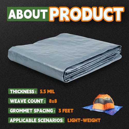 • Tarps 6x8 Feet (Pack of 5) - 5.5 Mil, Multipurpose Waterproof Poly Tarp Cover with Metal Grommets and Reinforced Edges, Silver/Blue Tarp by RAINDEWAY