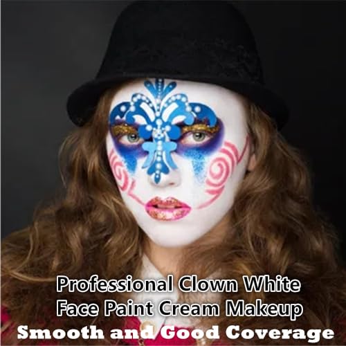 • Go Ho Clown White Body Paint Washable(2.37oz),Water Based Professional Cream White Face Body Paint Makeup,White Foundation for Halloween Cosplay Costumes Festivals SFX Joker Skeleton Clown Makeup