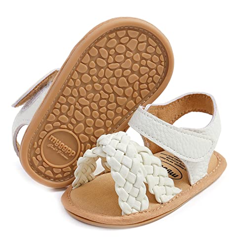 • SOFMUO Baby Girls Knitted Sandals Premium Soft Anti-Slip Rubber Sole Infant Summer Walking Shoes Toddler First Walkers (A04/White,0-6 Months)