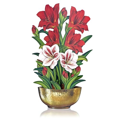 • Freshcut Paper Pop Up Cards, Scarlet Amaryllis, 16 Inch Life Sized Forever Flower Bouquet 3D Popup Greeting Cards, Christmas Cards, Holiday Gift Cards with Note Card and Envelope