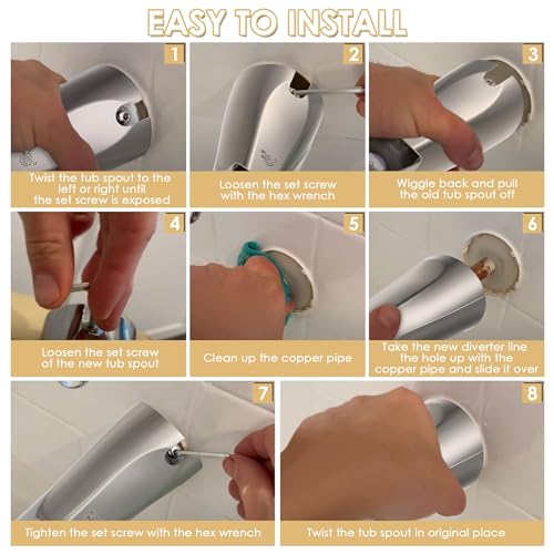 • Slip on Tub Spout with Diverter, Compatible with American Standard 8888026.002 Tub Spout, Bathroom Bathtub Faucet, Fits 1/2" Copper Water Tube(5/8" Dia), 5/32" Hex Wrench(Brushed Nickel,2)