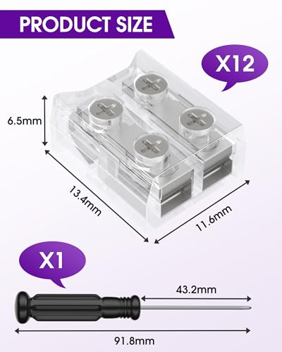 • HitLights 12 Pack LED Connector 2 Pin 10mm Solderless LED Tape Lights Connector Transparent LED Strip Lights Connectors with Screwdriver Strip to Wire for 12V 24V Single Color LED Light Strips