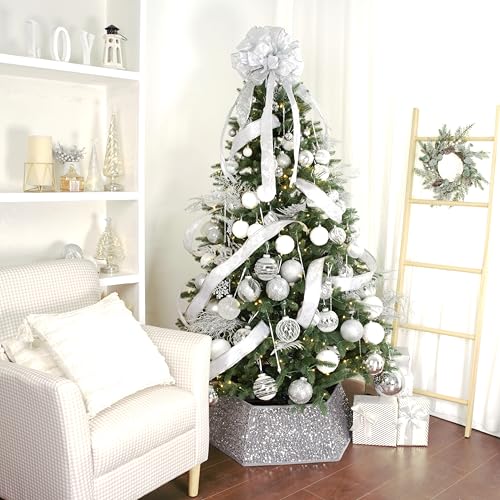 XmasExp 24ct Mini Christmas Ball Ornaments Shatterproof Christmas Ornaments Set Decorations for Xmas Tree Balls 30mm/1.18" (White)
