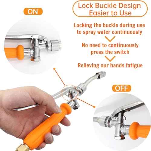 Riomhorry 44'' Metal Sprayer Wand Replacement,1/4" & 3/8" Brass Barb Universal Sprayer Wand with Shut off Valve, Stainless Spray Wand with 1/2" & 3/8" Hose Quick Connectors, 2 Hose Clamps, 1 Tape, Orange 44 IN, 44 inches