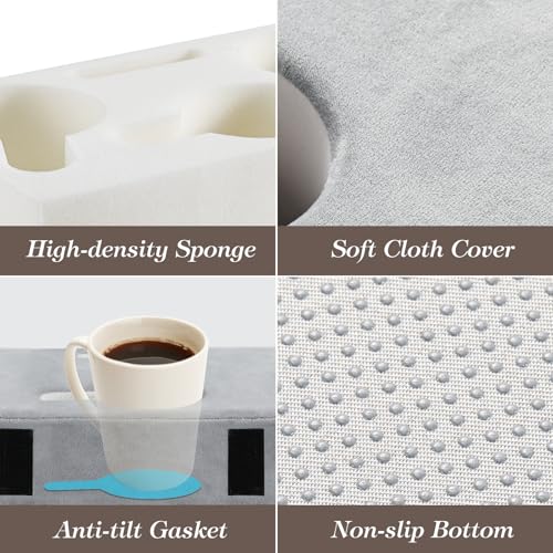 • Luxspire Couch Cup Holder, Couch Caddy with 8 Holes and Side Pocket, Couch Cup Holder Tray for iPad/Drinks/Remote Control/Snacks Holder, Gray