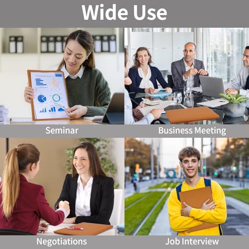 • MOWPOG Professional Padfolio Portfolio Binder, Faux Leather Interview Resume Folder, Letter Size A4 Legal Writing Pad Holder, Document Organizer for Business School Office Conference (Brown)