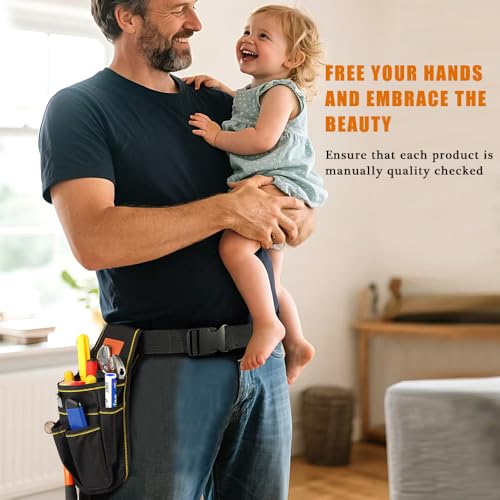 NEW B1919 Universal Small Tool Pouch, Small Tool Bag, Tool Pouch with Belt, Industrial Grade Thickened Wear-Resistant Oxford Cloth, 12 Storage Ports, Ideal for Electricians, Mechanics, Carpenters and More, Black Item Sku: